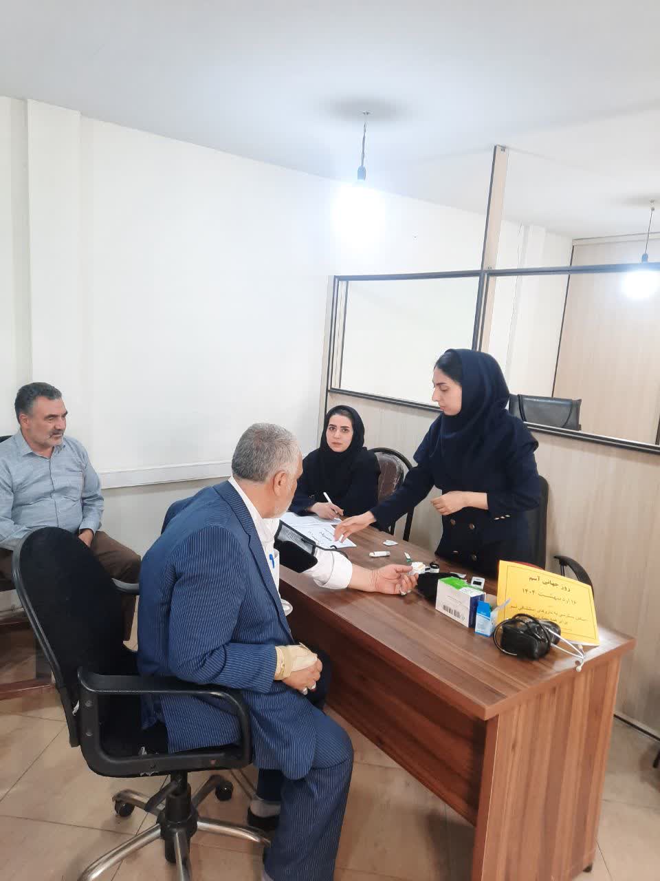 در این برنامه مورخ 7 اردیبهشت 1404، انجام شد، خانمها محدثه درویشی و سحر مرادی از مراقبین سلامت شبکه بهداشت، با انجام اندازهگیری قند خون و فشارخون، وضعیت سلامت ۲۴ نفر از پرسنل این اداره را مورد ارزیابی قرار دادند.