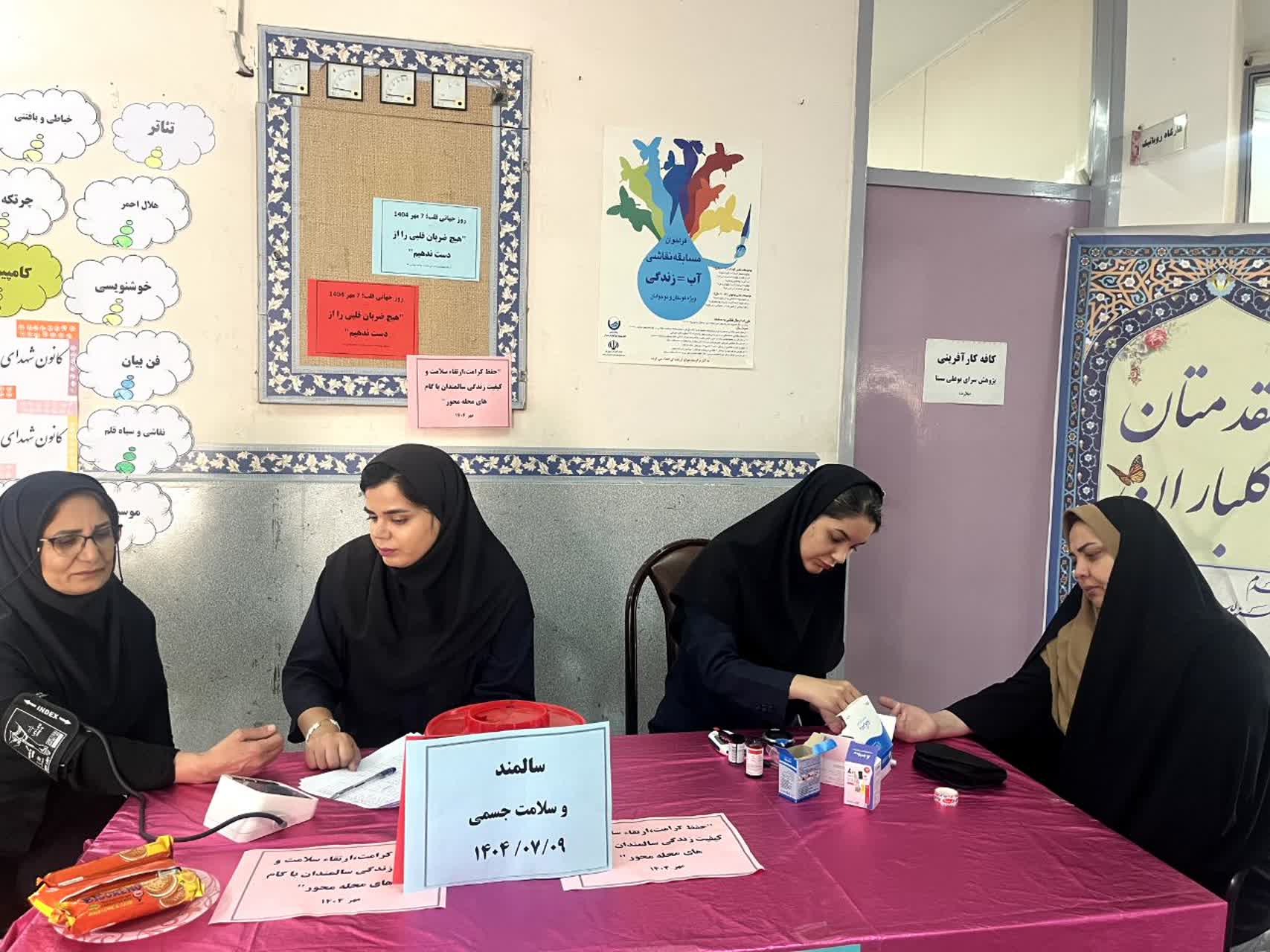 در حاشیه این برنامه، میز خدمت سلامت برپا شد و مربیان و مدیران حاضر از خدمات غربالگری شامل اندازه‌گیری قند خون و فشار خون و مشاوره های بهداشتی رایگان بهره‌مند شدند.