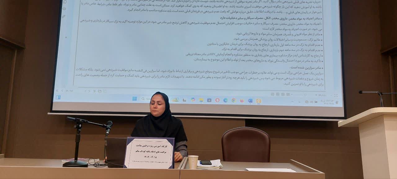 کارگاه آموزشی مراقب های ادغام یافته کودک سالم در تاریخ ۱۸ تیرماه ۱۴۰۴، در سالن اجتماعات غدیر شبکه بهداشت و درمان شهرستان ملارد توسط زهرا میرزایی کارشناس واحد بهداشت خانواده برگزار شدد.
