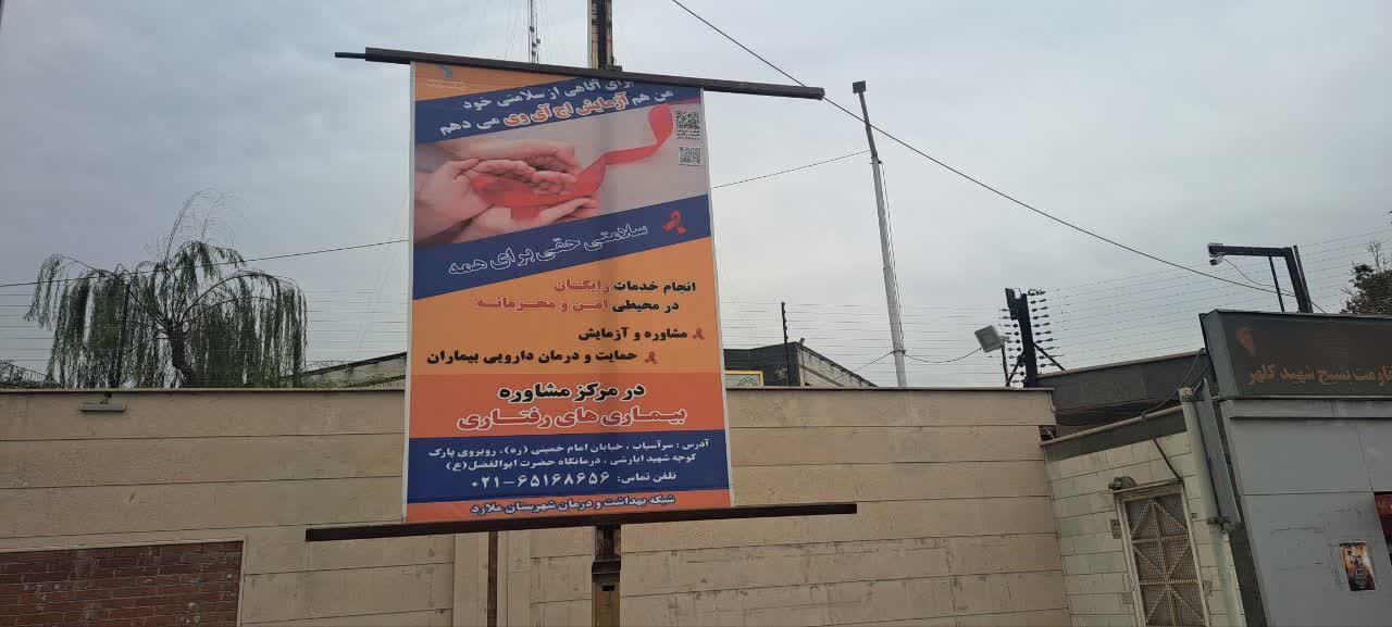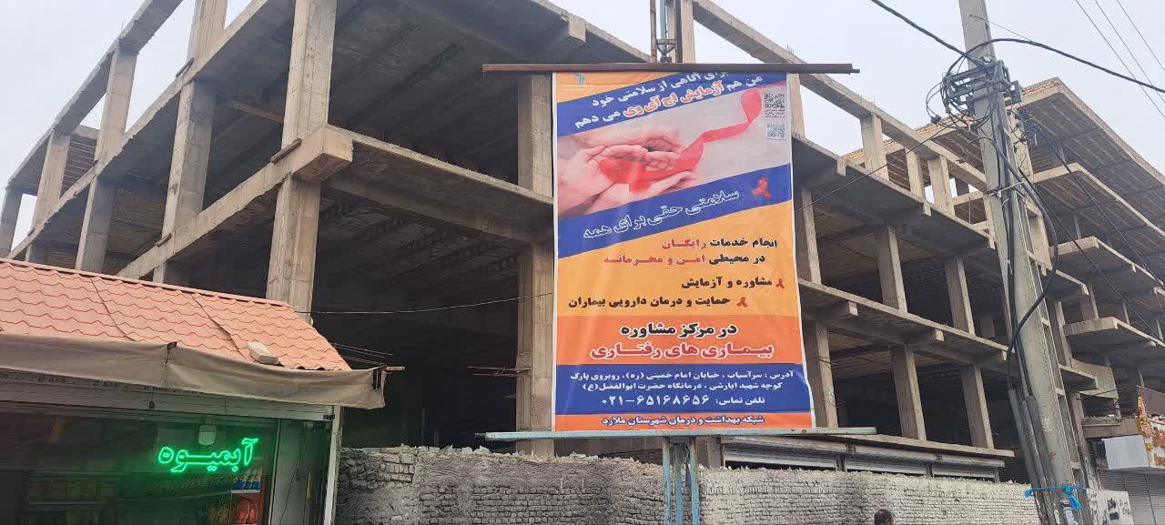 نصب بنر کمپین اطلاع رسانی و بیماریابی HIV در سطح شهر، برگزاری جلسات آموزشی
